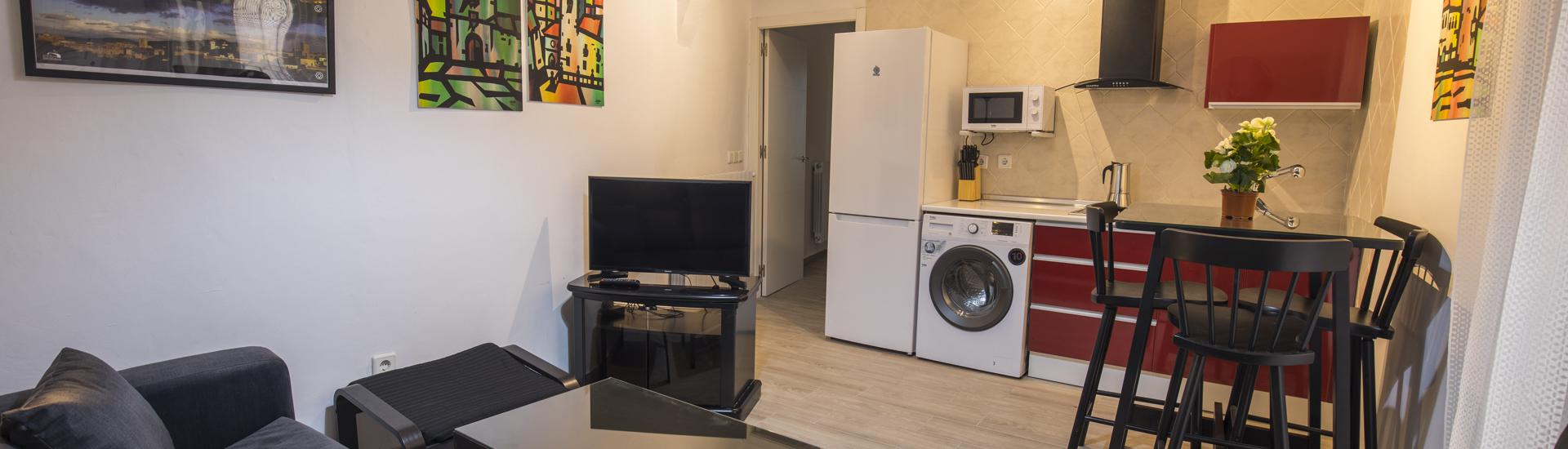 Apartamento situado en la planta primera y que consta de un salón-cocina, dos habitaciones y un cuarto de baño.